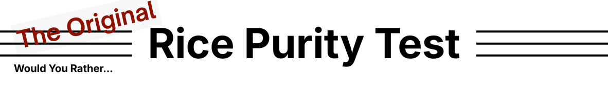 The Rice Purity Test is a legendary 100-question survey that originated at Rice University. It serves as a self-assessment tool designed to gauge a person's level of innocence in the world of worldly experiences, including romantic relationships, rule-breaking, and other adventurous activities.